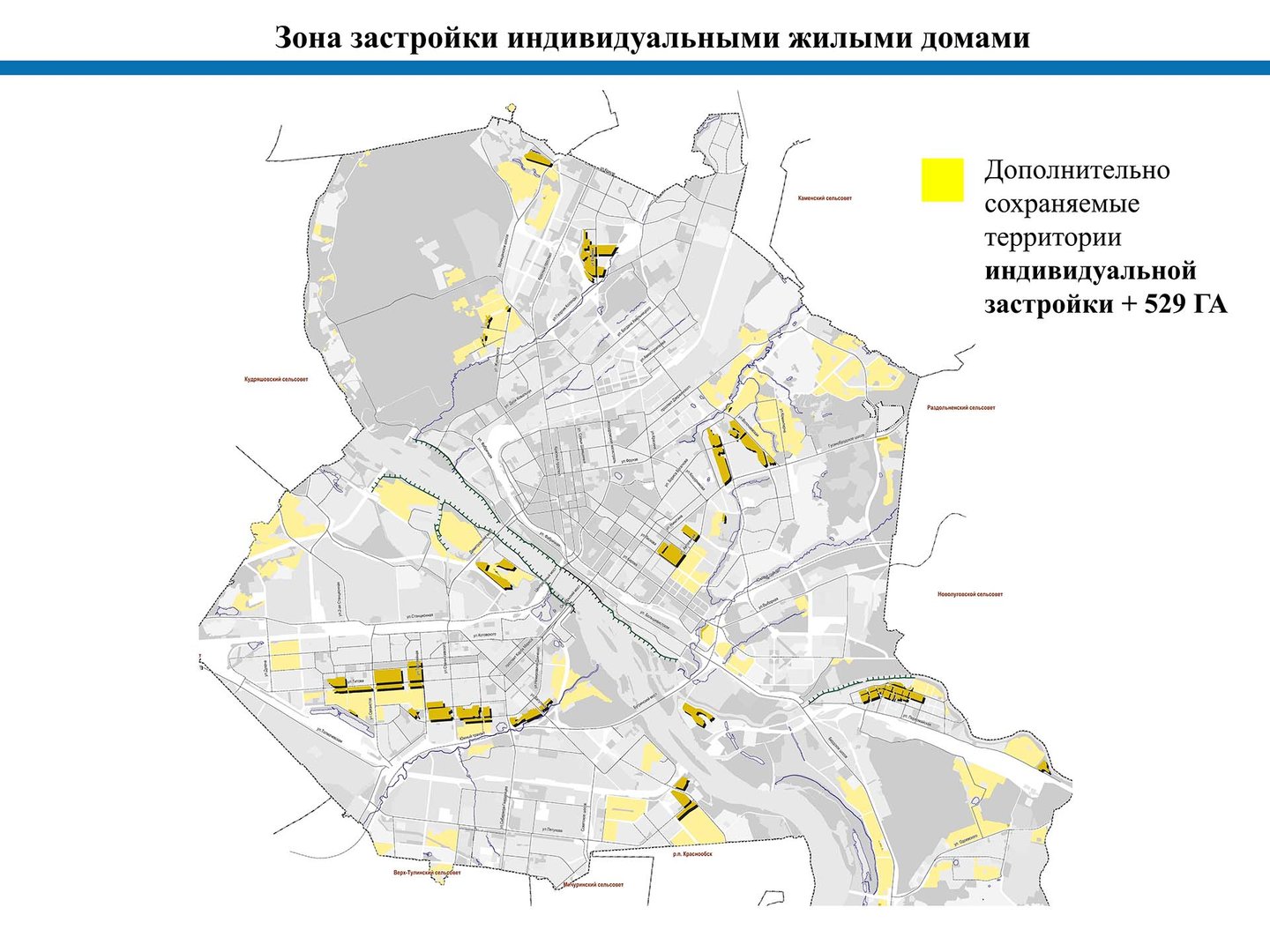 В связи с массовыми обращениями граждан, по итогам проведенных встреч совместно с депутатским корпусом как до публичных слушаний, так и по их итогам изменена зона многоэтажной застройки на зону индивидуальной жилой застройки для территорий фактически занятых индивидуальными жилыми домами, по следующим территориям:
